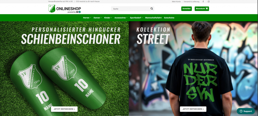 Gemeinsam mit der Firma Fan12 haben wir einen eigenen Online-Shop für den SV Nikolausdorf-Beverbruch auf die Beine gestellt. Es gibt richtig coole Fanartikel für jeden – ob für den Sportplatz, den Alltag oder als Geschenk.